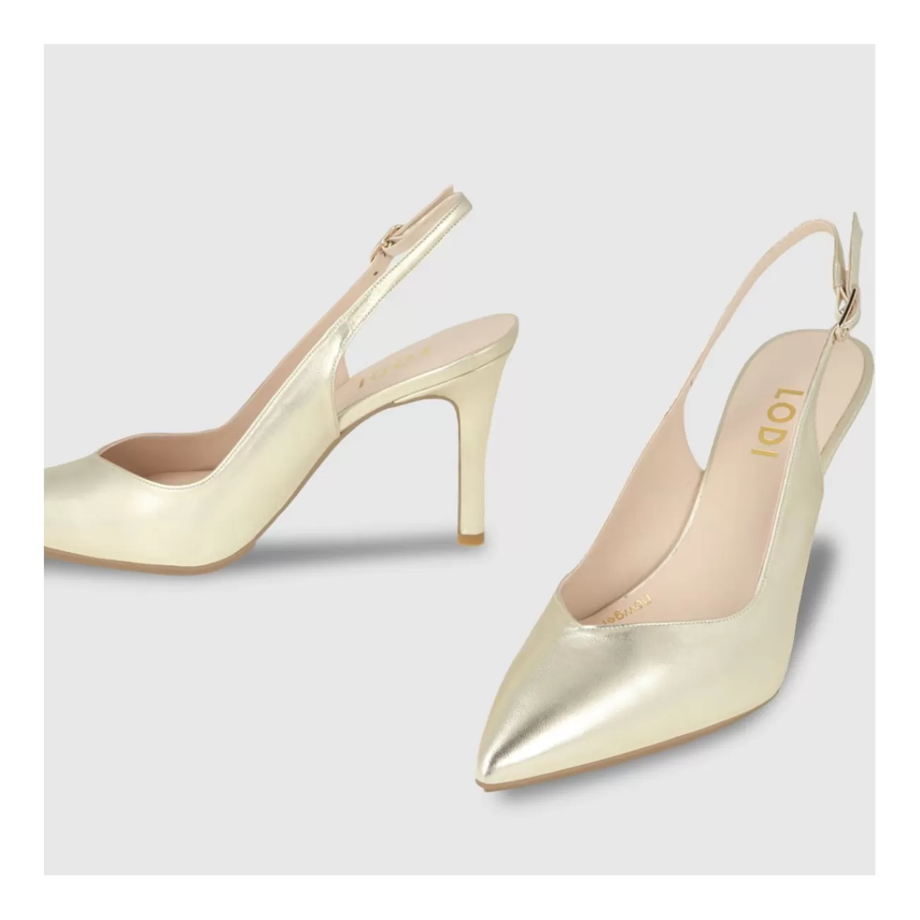 Escarpins à talon ouvert femme de la marque LODI en cuir avec éclats de couleur dorée