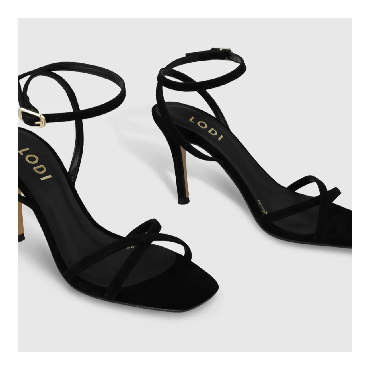 Sandalias de mujer SIBAR de LODI en ante. Estiloso diseño con finas tiras cruzadas en la zona delantera. Confeccionado con tacón fino de 8.5 cm de altura. Cierre en lateral mediante hebilla metálica con pulsera al tobillo. Punta cuadrada. Interior forrado en piel. Incluye planta new gel para mayor comodidad en todas tus pisadas. Fabricado en España.