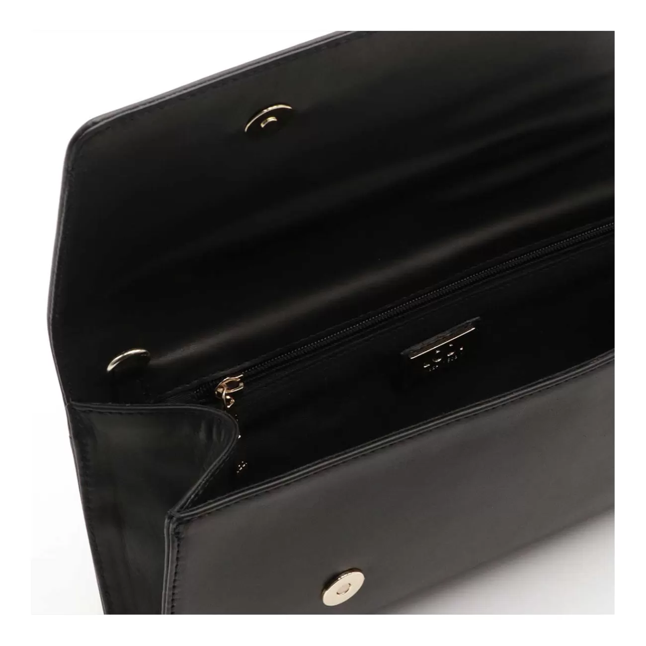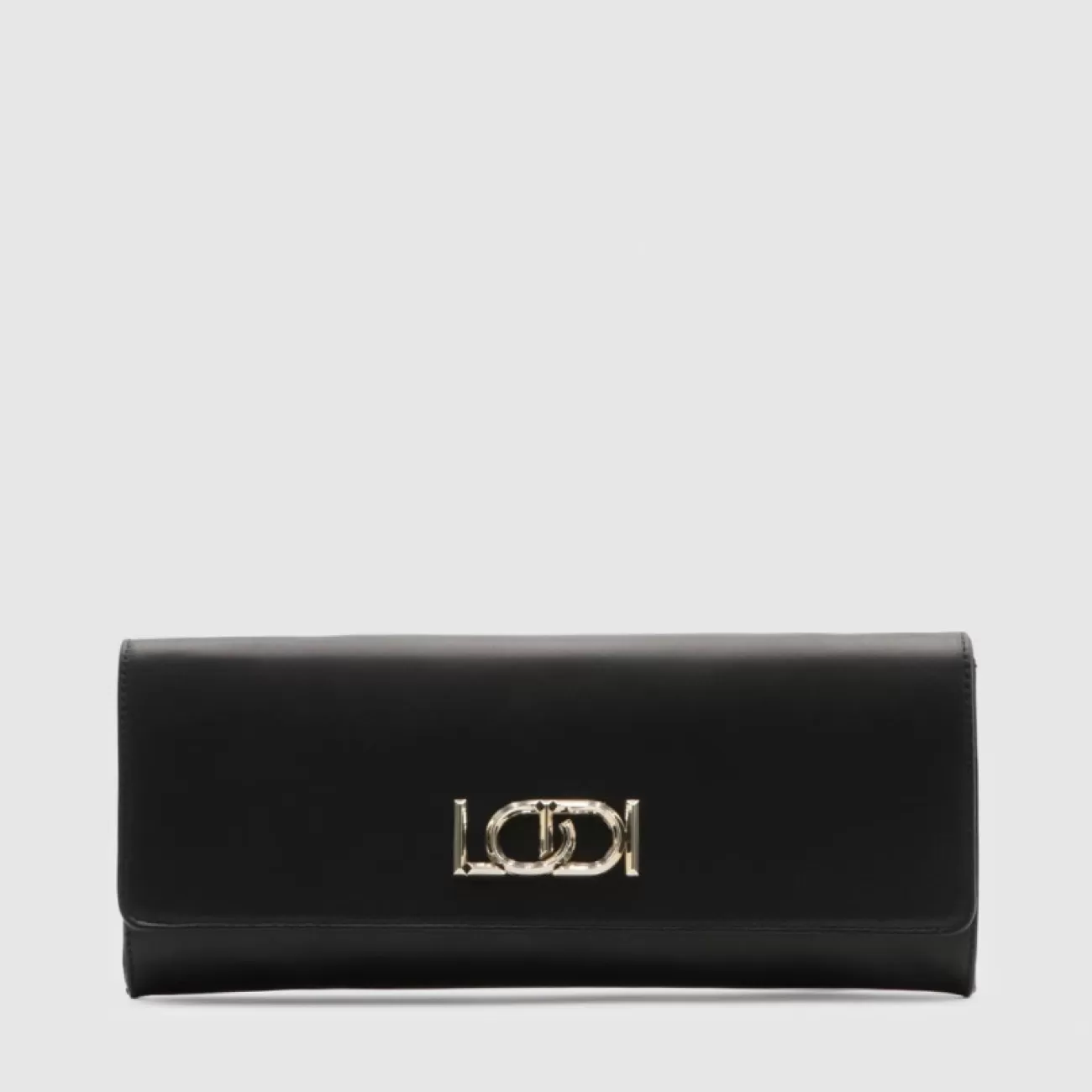 Bolso cartera de mano modelo INGRID de LODI en piel de color negro. Detalle en solapa, logo de la firma en metálico color oro. Asa extraible de hombro en piel negra. Bolsillo interior con cremallera. Interior forrado en tejido. Cierre mediante imán. Alto x Ancho X Fondo 14 x 32.50 x 5.90.