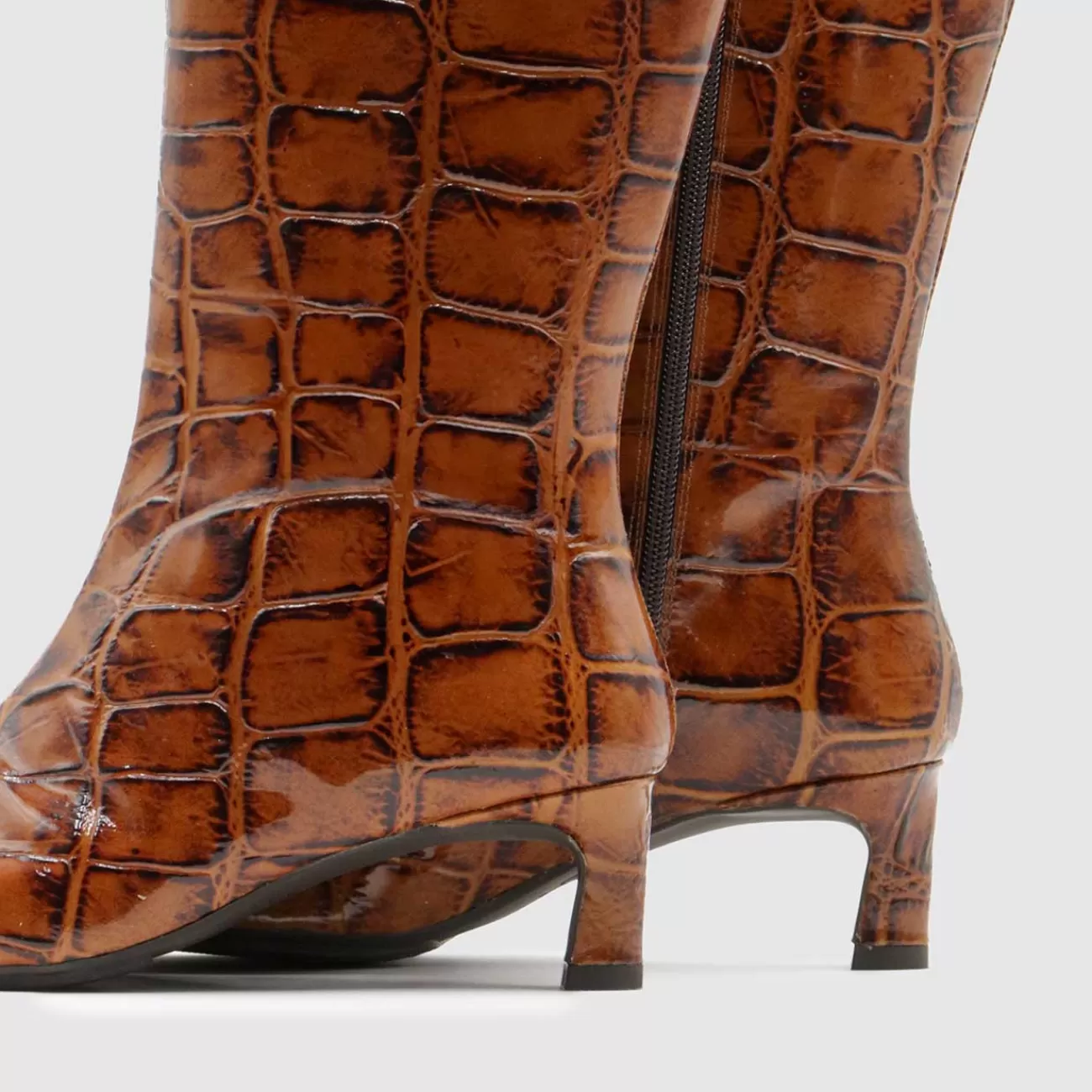 Botas alta de mujer CHITER de LODI en piel acharolada. Estiliso diseño con piel grabada en cocodrilo. Confeccionadas con tacón medio de 5 cm de altura. Cierre mediante cremallera en lateral interno. Punta fina. Interior forrado en piel. Incluye planta new gel para mayor comodidad en todas tus pisadas. Fabricado en España.