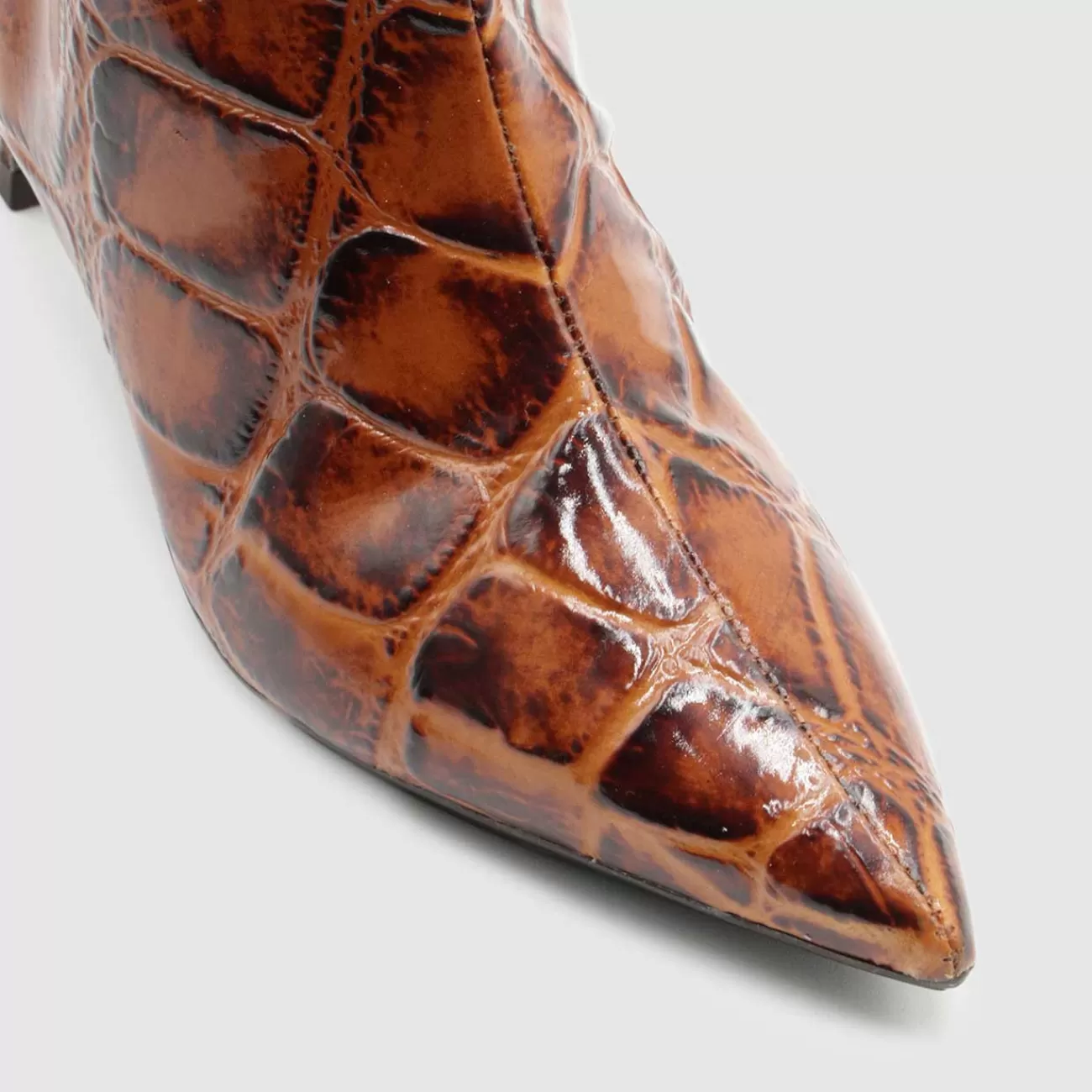 Botas altas de mujer en piel grabada acharolada.