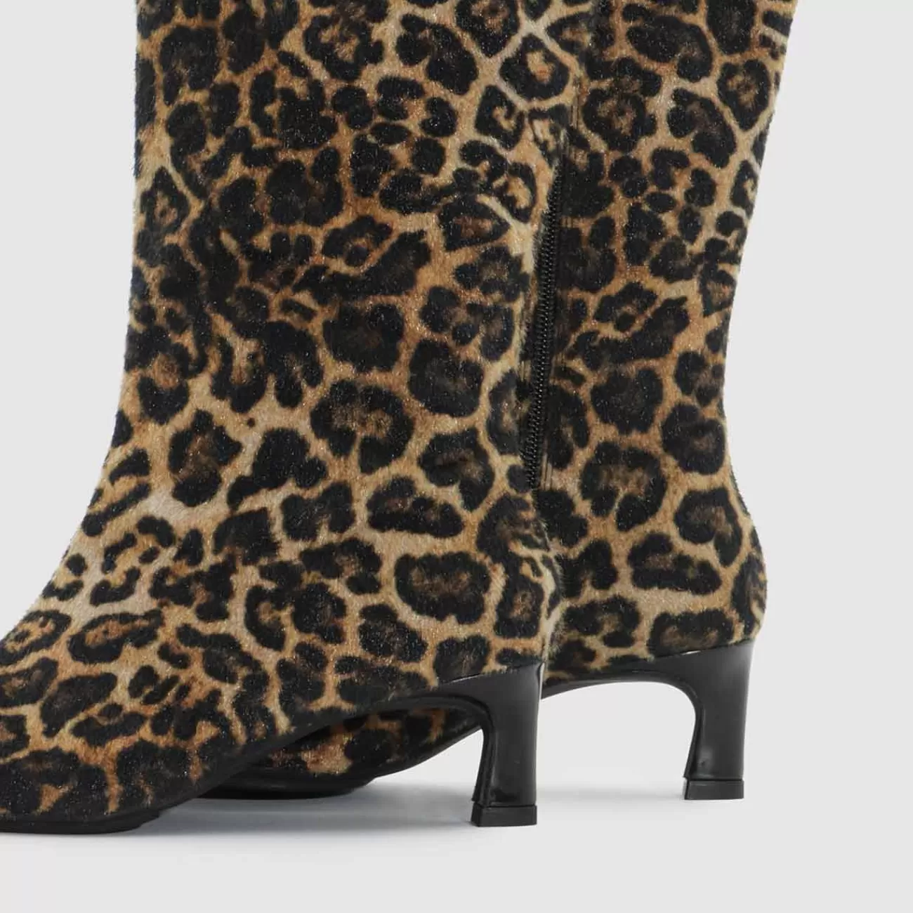 Botas altas de mujer CHITOS de LODI de pelo efecto animal print. Diseño tendencia para tus mejores looks.Confeccionado con tacón de 5.5 cm de altura. Cierre mediante cremallera metálica en parte interior. Punta fina. Interior forrado en piel. Incluye planta new gel para mayor comodidad en todas tus pisadas. Fabricado en España.
