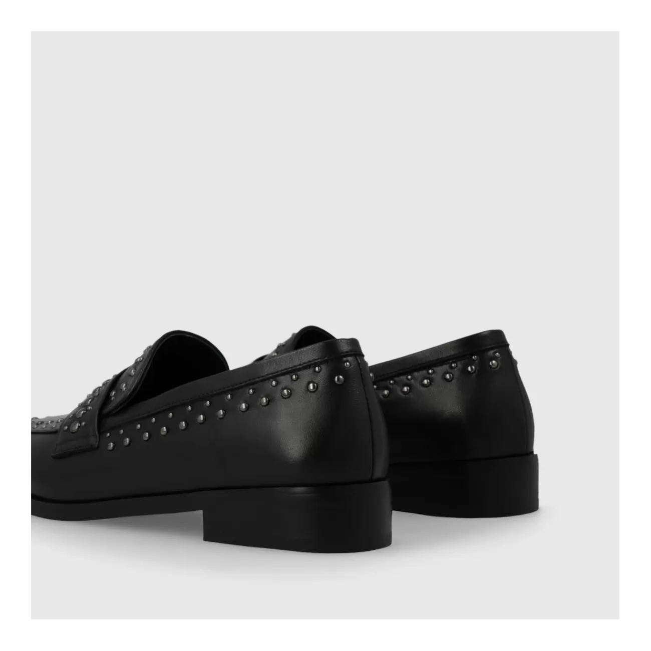 Mocassins pour femme DO5110 de LODI en cuir. Détail de clous métalliques. Design avec talon large de 2,5 cm de hauteur. Bout semi-carré. Intérieur doublé en cuir. Inclut une nouvelle semelle en gel pour plus de confort à chaque pas.