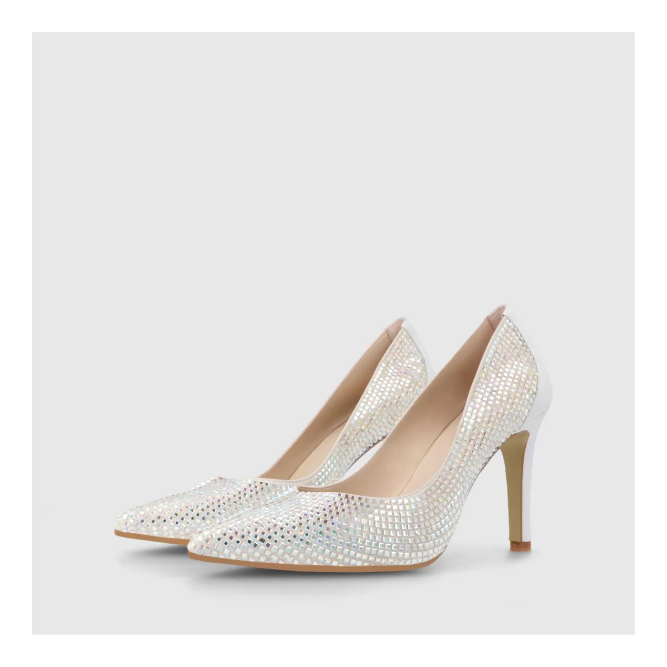 Escarpins de mariée LODI RADISCO en cuir blanc avec détail en cristal. Un design réalisé avec un talon haut de 9,5 cm. Bout fin et décolleté en V. Intérieur doublé cuir. Comprend une nouvelle semelle intérieure en gel pour un plus grand confort dans toutes vos étapes. Fabriqué en Espagne.
