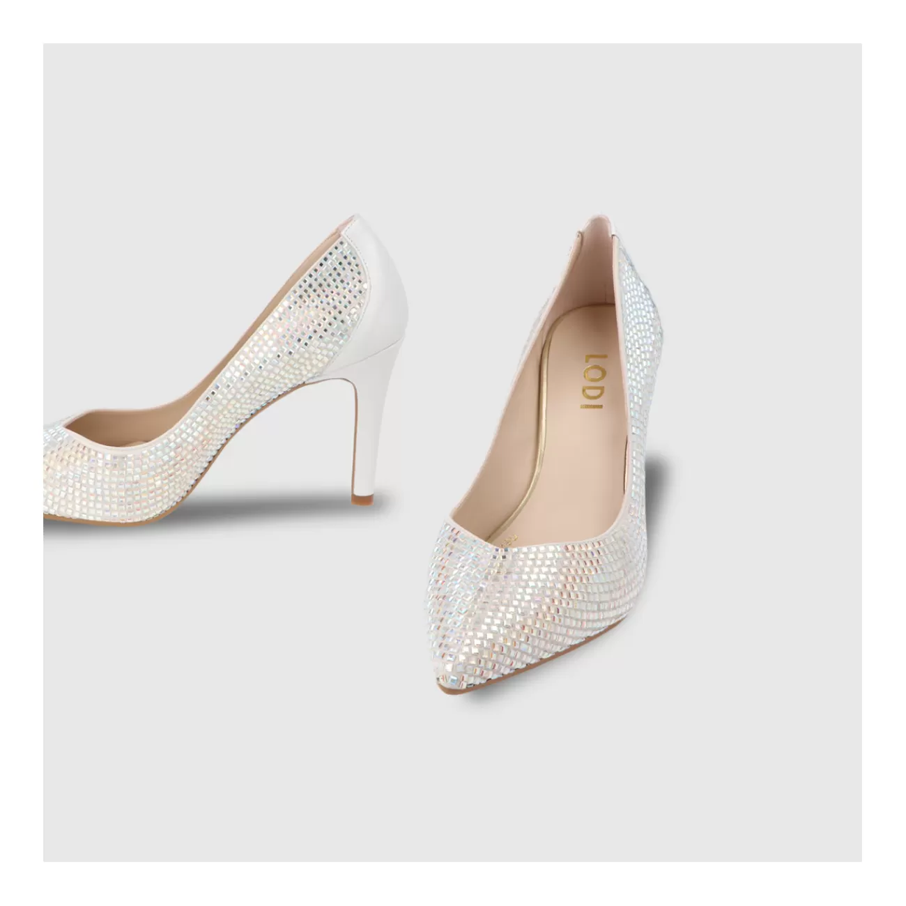 Escarpins de mariée LODI en cuir blanc avec détail en cristal