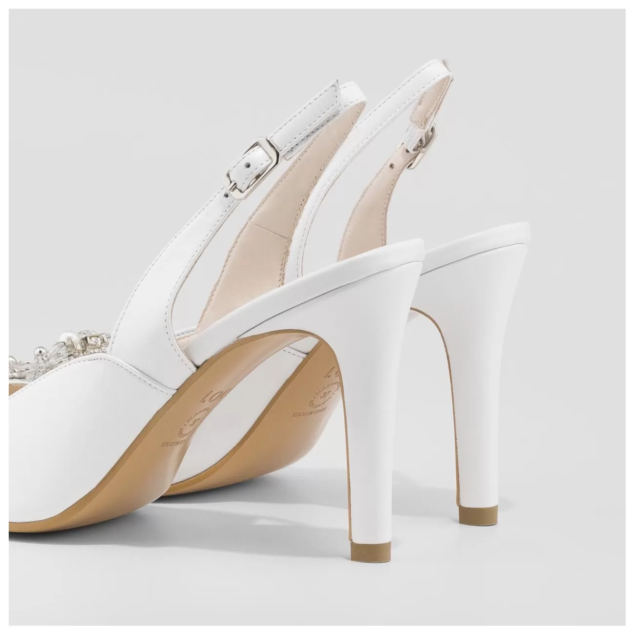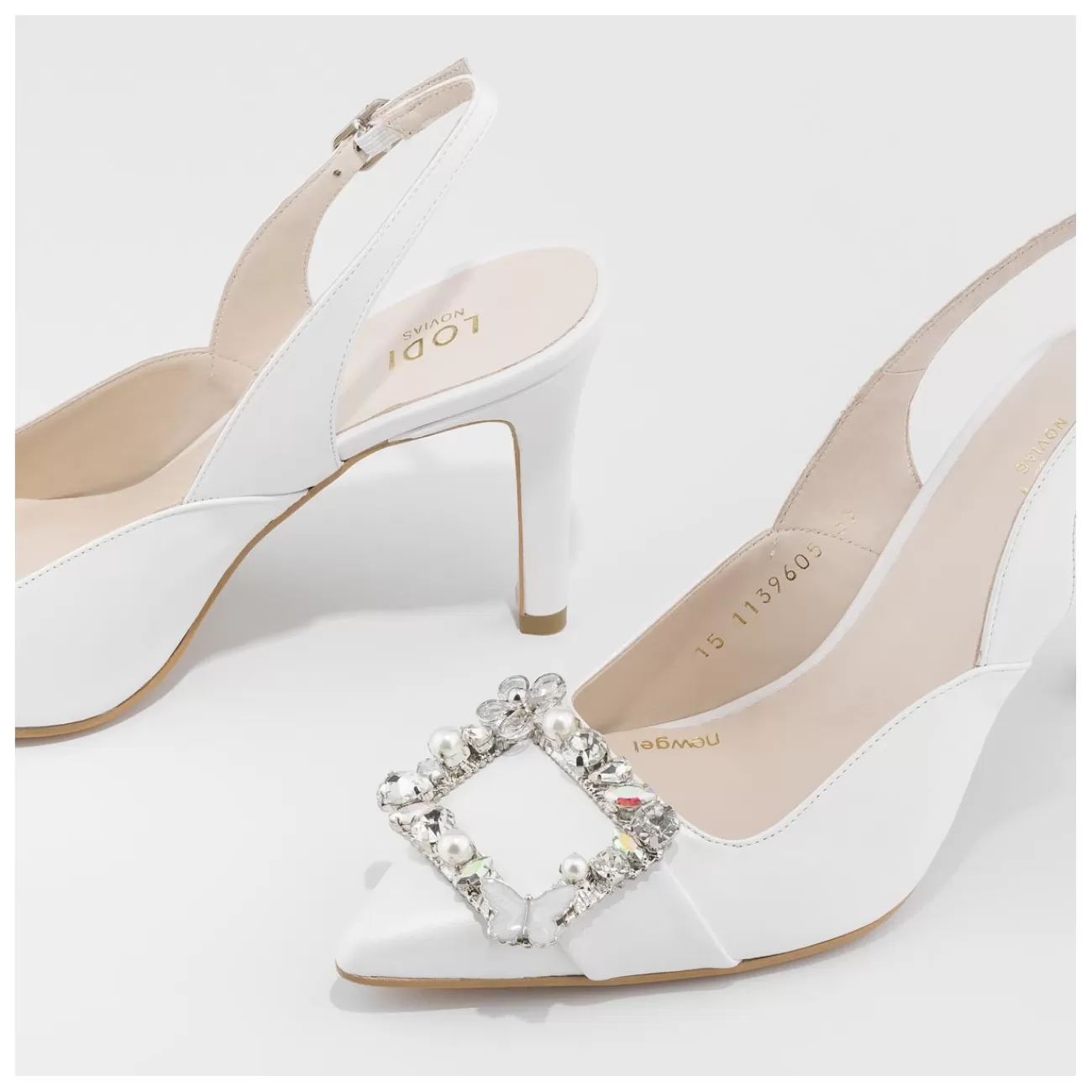 Salón destalonado de novia Raga en piel lisa de color blanco y hebilla joya